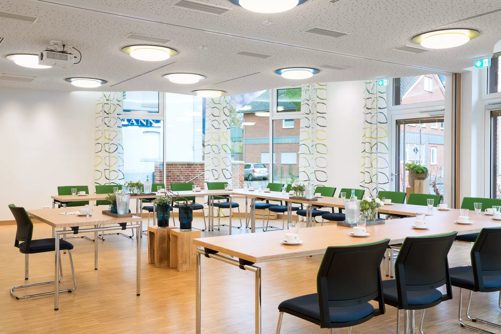 Als Tagungshotel im Münsterland bieten wir Ihnen passgenaue Möglichkeiten für viele Gelegenheiten. Ob Sie einen Seminarraum für 8 Personen oder einen Bankettsaal für 100 Personen buchen möchten – unsere multifunktionalen modernen Tagungsräume bieten Komfort und Flexibilität. Wir planen mit Ihnen nach Ihren individuellen Vorstellungen und Wünschen. Ob Vortrag, Tagung, Seminar, Workshop, Produkt Präsentation, Weihnachts- oder Betriebsfeiern – unsere hellen freundlichen Räume schaffen eine Wohlfühlatmosphäre zum Arbeiten und Feiern. In den Pausen finden Sie Entspannung auf dem Campusgelände in ländlicher ruhiger Umgebung.